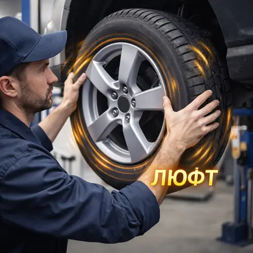 Проводится проверка люфта колеса и состояния ступичного узла, что позволяет определить, какой подшипник требует замены.